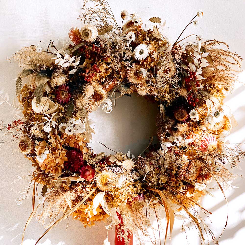 Dried flowers are officially ‘cool’. The concept of ‘dried’ also underpins the ethos of Florage & Co – in that dead or alive, there is beauty and something wonderful to behold in every flower. We can tailor-make a varied selection of wreaths and displays that showcase the fragility and delicateness of dried blooms. Not only do they add a distinct and unique look, but are also a wonderful investment due to their extended life span.